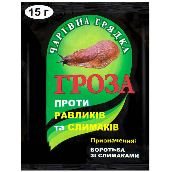 Гроза — ефективний засіб для боротьби з голими слимаками і равликами на овочевих, ягідних, плодових, квіткових культурах і винограді.